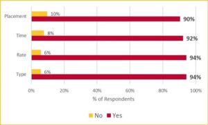 It is one thing to be aware of the program, but it is another to follow through with the 4R program recommendations, or for the program to influence business decisions. However, of CAAR respondents who are aware of the 4R initiative, 90% or more stated that their fertilizer recommendations follow each of the 4R guidelines, for placement, time, rate and type (Figure 2). Additionally, 88% of CAAR respondents reported including nitrogen inhibitors in their nutrient recommendations, a 4R practice that can reduce fertilizer greenhouse gas emissions by up to 75%.