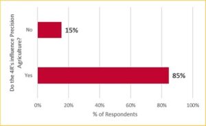 The OABA survey differed slightly from the CAAR survey, in that respondents were instead asked whether the 4R initiative influenced decisions related to precision agriculture. 85% of respondents indicated that the 4R Nutrient Stewardship program influences decisions surrounding the implementation of precision agriculture technologies (Figure 3).
